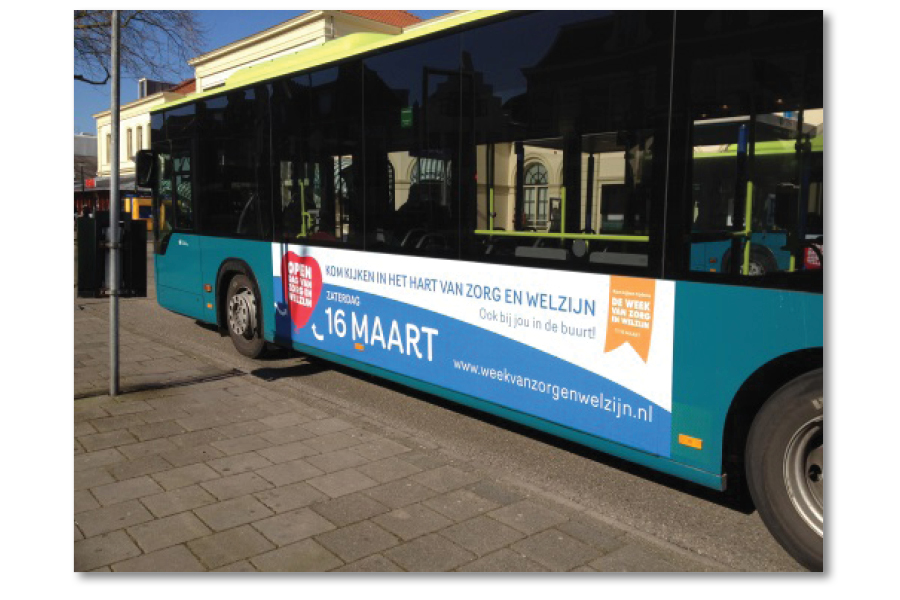 In samenwerking met Sandra Troost van SAN Marketingcommunicatie verzorgt JoStudio al jaren divers promotiemateriaal t.b.v. deze Week van Zorg en Welzijn, waaronder in 2013 deze busbelettering.
