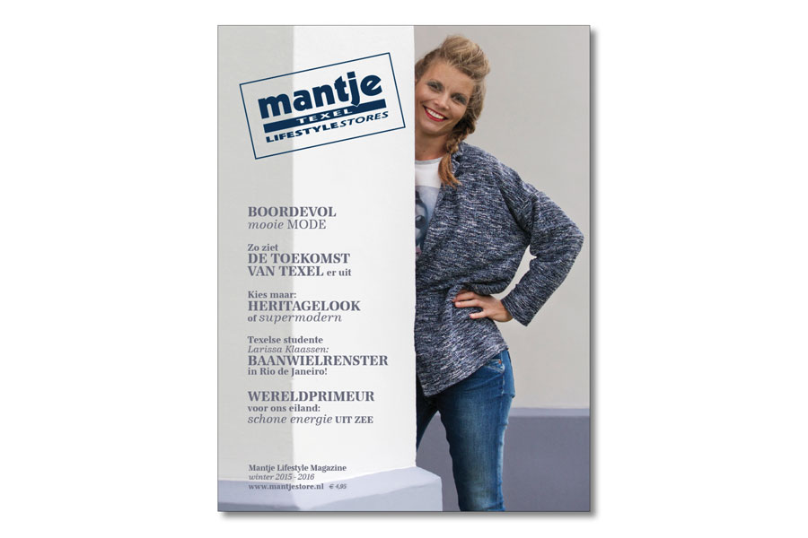 Mantje Lifestyle Stores is een begrip op Texel en daarbuiten. Uniek is dat Mantje, dat bestaat uit twee winkels met mode, schoenen en outdoorproducten voor dames en heren en een kindermodewinkel, twee keer per jaar met een dik glossy magazine uitkomt. Gratis voor alle Texelaars en klanten in het land.