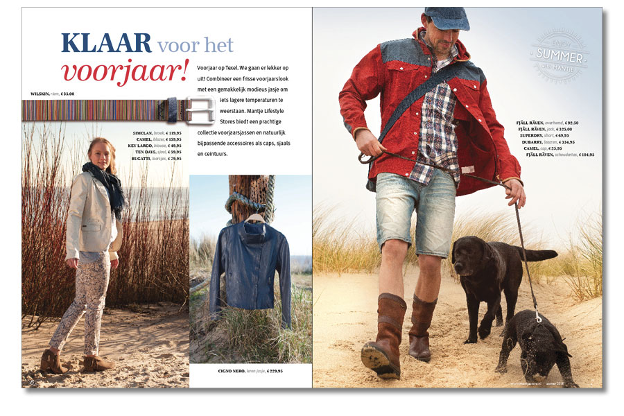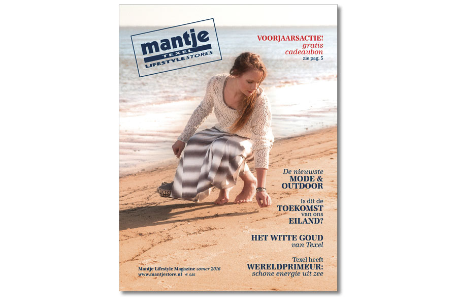 Mantje Lifestyle Stores is een begrip op Texel en daarbuiten. Uniek is dat Mantje, dat bestaat uit twee winkels met mode, schoenen en outdoorproducten voor dames en heren en een kindermodewinkel, twee keer per jaar met een dik glossy magazine uitkomt. Gratis voor alle Texelaars en klanten in het land.