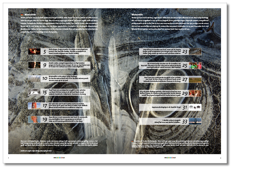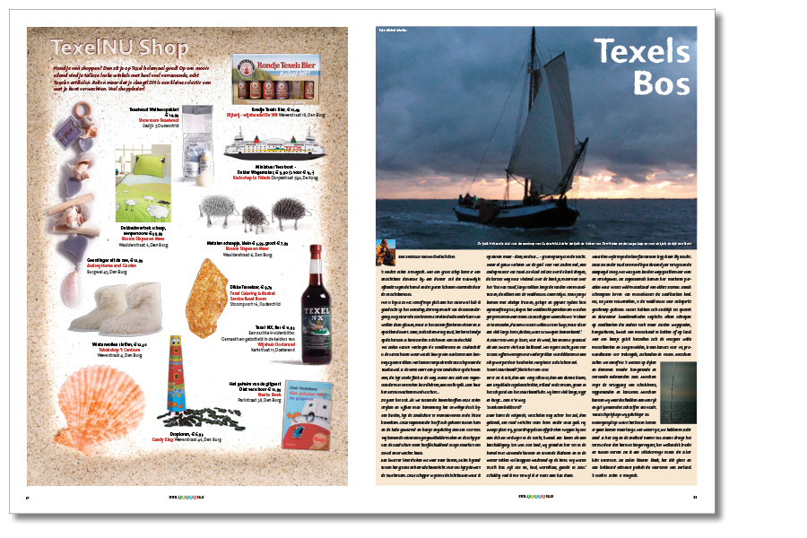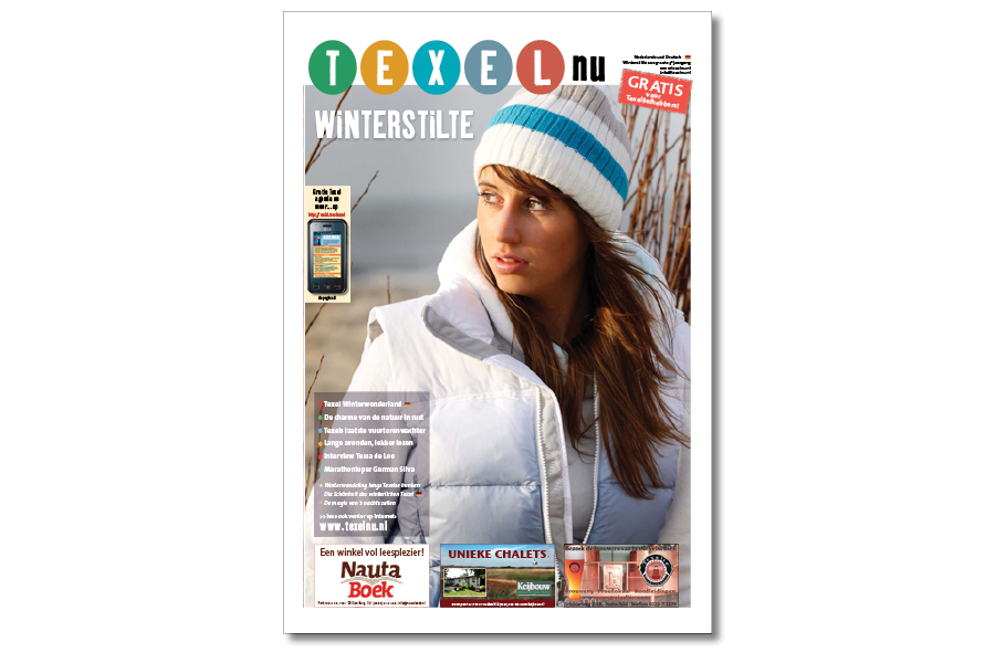 De TexelNU-krant: een gratis krant voor de Texeltoerist. De krant is tevens een aansprekend podium voor de enthousiaste ondernemers op het eiland. Iedere uitgave heeft een passend (seizoens)thema; in deze winter-uitgave werd er gekozen voor het thema Winterstilte.