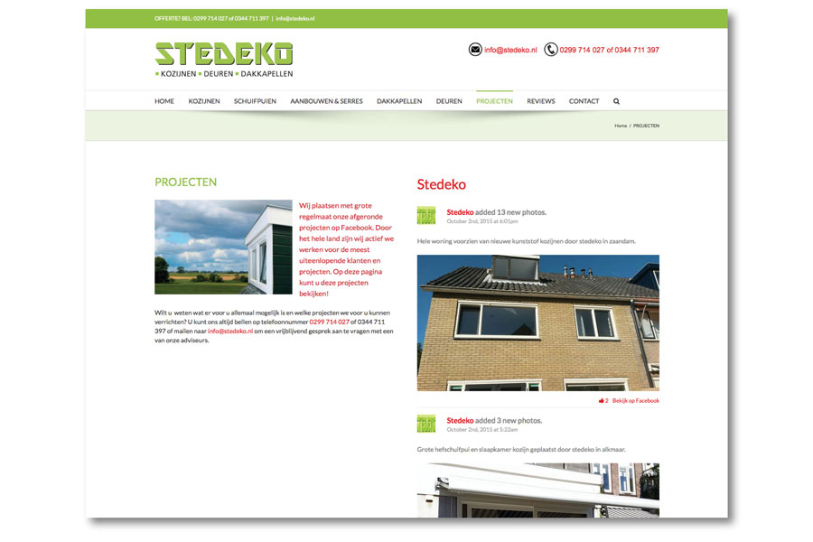 De wens van Stedeko voor de nieuwe website was vooral te laten zien wat de mogelijkheden van het bedrijf zijn. Dus heeft JoStudio een website gemaakt waarop veel afgeronde projecten van Stedeko te zien zijn, zodat potentiële nieuwe klanten overtuigd worden.