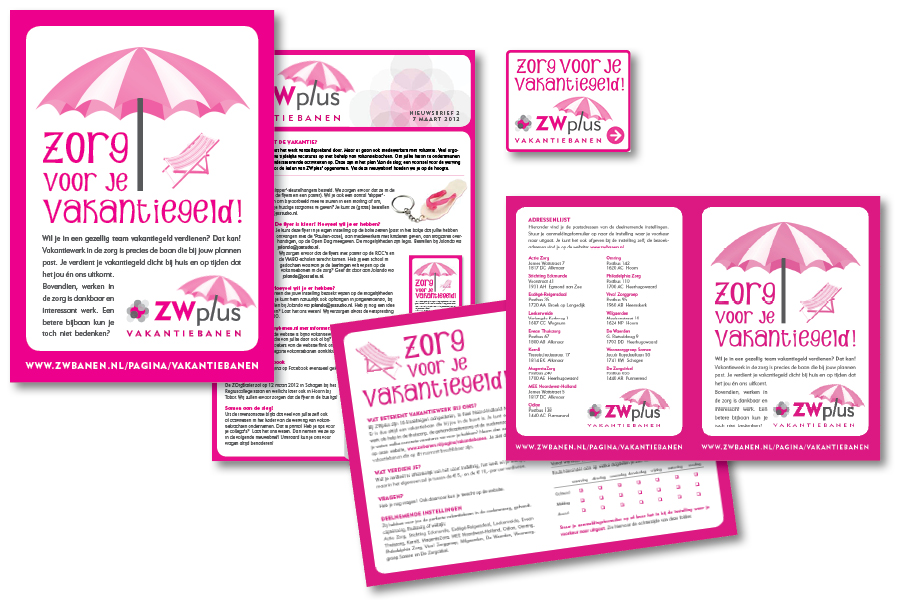 Op ZWBanen.nl bieden de deelnemende zorgorganisaties samen een scala van informatie over de opleidings- en carrieremogelijkheden die de zorg biedt. Voor een wervingscampagne voor vakantiekrachten maakte JoStudio het logo en verzorgde flyers, folders en banners voor deze campagne.